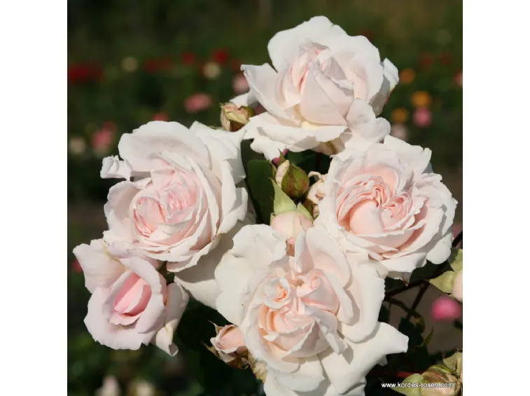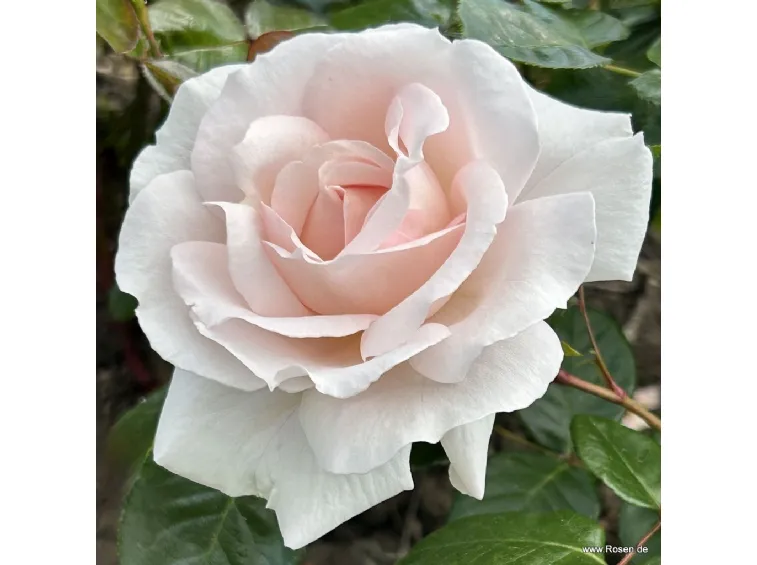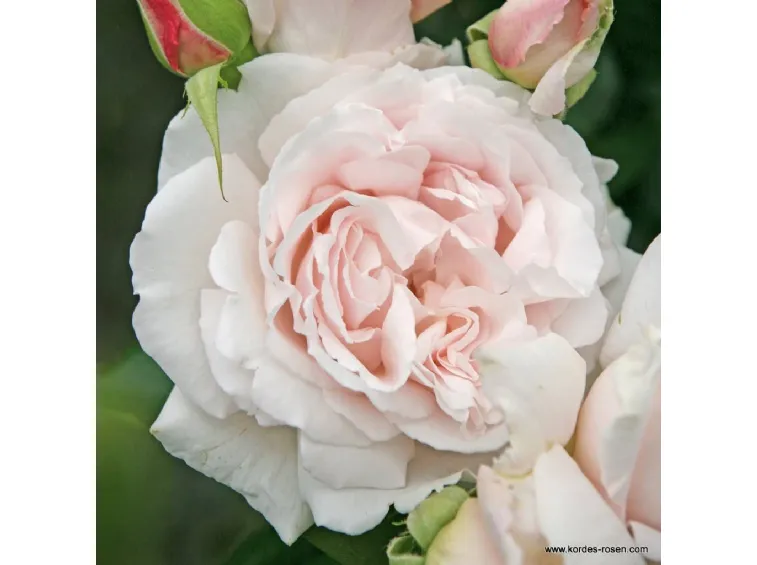 Fiore elegante, doppio, a coppa, dal diametro di 6 cm composto da più di 75 petali color crema rosati dall'intensa profumazione. Rifiorente e molto resistente alle malattie, cresce eretto e compatto fino a raggiungere un'altezza di 110 cm e larghezza di 80 cm.