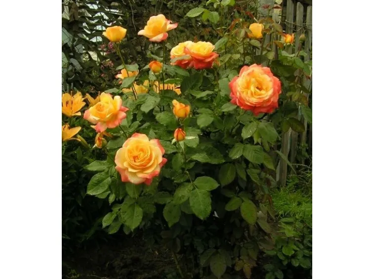 Fiori color pesca, giallo che sfumano in rossastro, larghi (12 cm di diametro) a forma di coppa molto profumati e rifiorenti. Crescita media, eretta, cespugliosa, fino a 80 -100 cm. Resistente alle malattie si adatta alla coltivazione in vaso ed è ideale per il reciso. Ha ottenuto la medaglia d'argento a Potsdam nel 2001, certificato di riconoscimento Adelaide 2008, certificato di merito Belfast 2001.